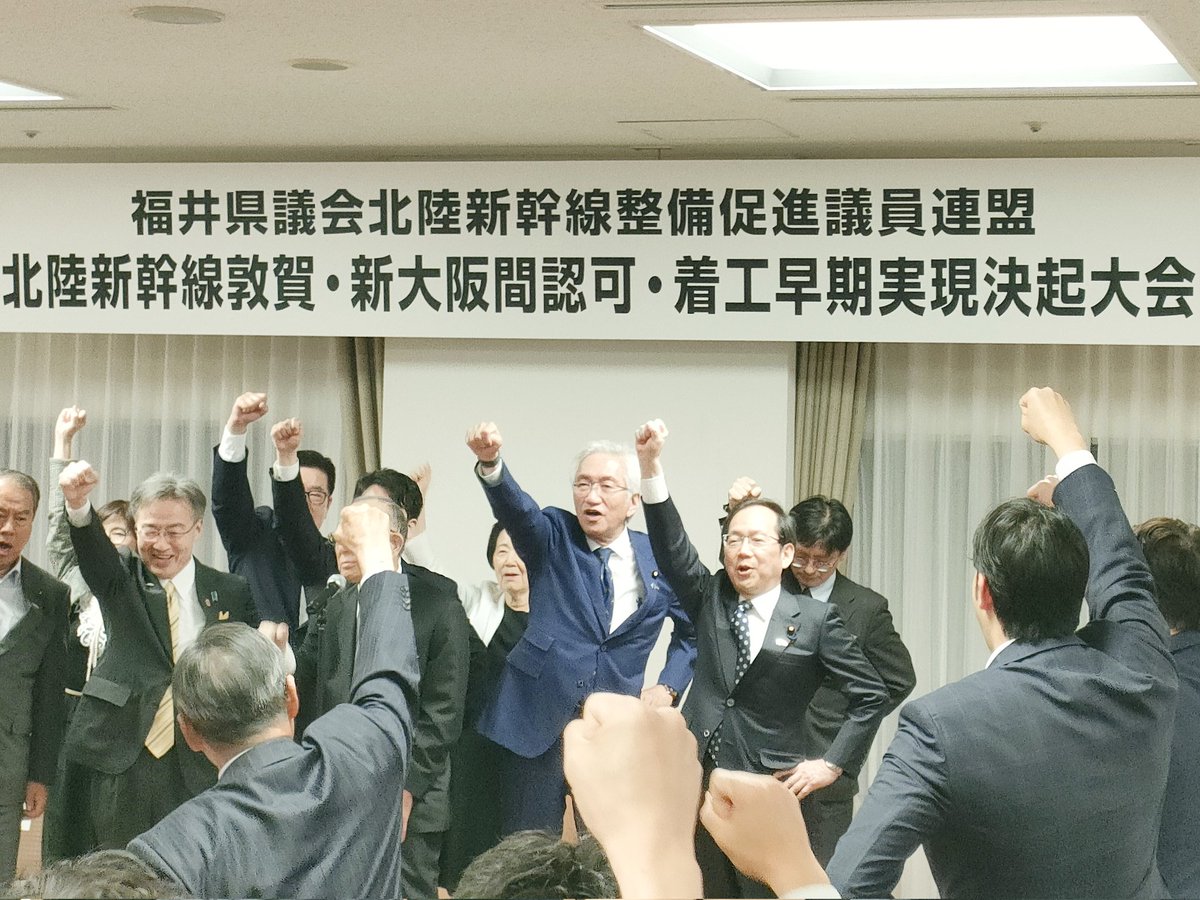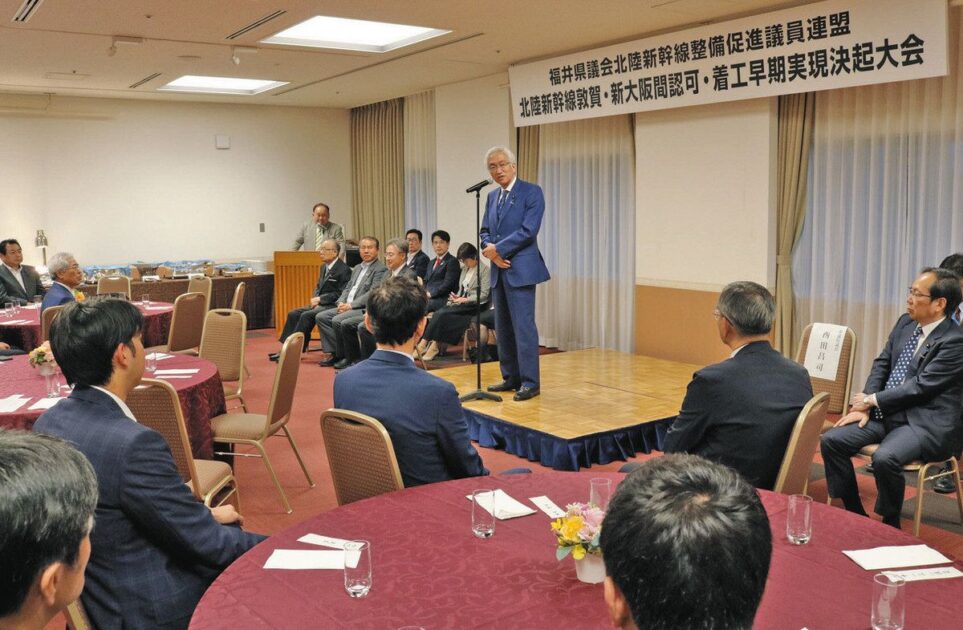 >議連会長の西本正俊県議は「米原ルートは(沿線の) 福井県も滋賀県も、JR西日本も否定している。いまだに主張するとは、北陸新幹線を敦賀で止めるつもりなのか」と指摘。「既に決定した小浜・京都ルートを前に進められない国ではいけない」と述べ、政治力の結集を呼びかけた。