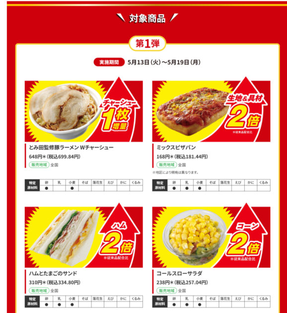 セブン-イレブン・ジャパンは、全国のセブン-イレブン各店舗にてキャンペーン「感謝祭 お値段そのまま!人気商品増量祭」を開催する。開催期間は第1弾が5月13日より5月19日まで、第2弾が5月20日より5月26日まで。