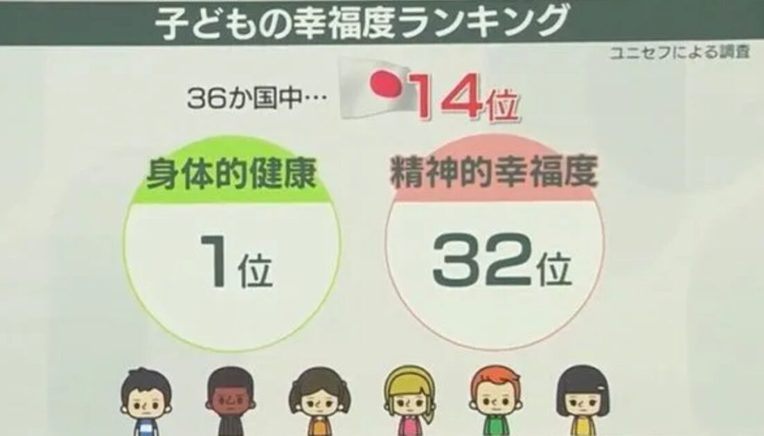 引用元: ・日本はナゼ低い?──「子どもの幸福度」ランキング 体の健康は1位も…“心の健康”は32位、専門家「最大の問題は自殺率」 [首都圏の虎★]