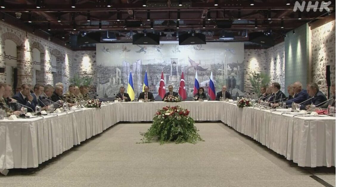 ロシアとウクライナの停戦をめぐる高官級の直接協議がトルコのイスタンブールで日本時間の今夜7時半すぎ、始まりました。ロイター通信などが配信した会場の映像では、メジンスキー大統領補佐官が率いるロシアの代表団とウメロフ国防相が率いるウクライナの代表団、それに仲介役のトルコの外相などが出席しています。