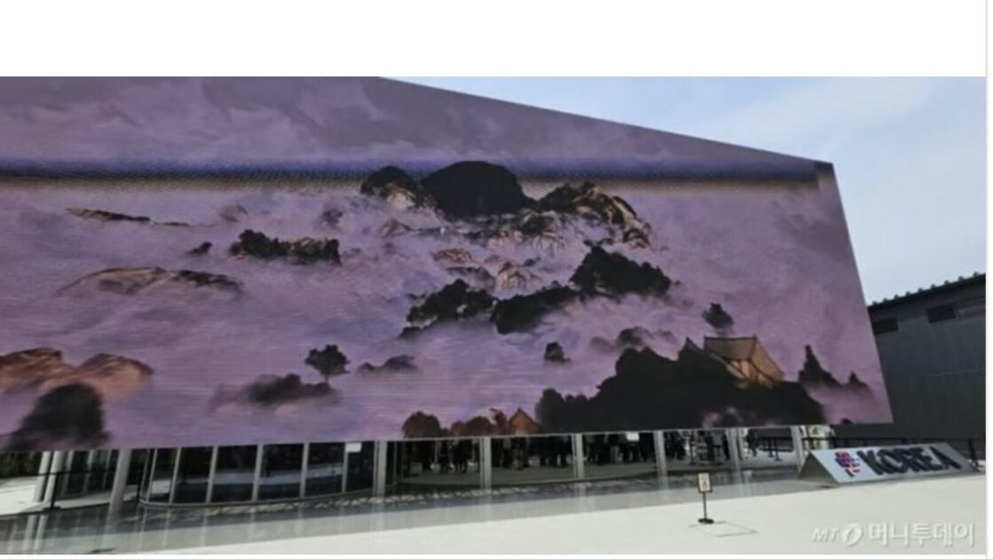 12日、記者が訪れた韓国館では、LED外壁(メディアファサード)を活用し、韓国の古宮や自然、夜景を描いた映像が繰り返し上映されていた。高さ10メートル、幅27メートルの巨大スクリーンに映し出された映像に、通りすがりの観客たちが足を止め、感嘆の声を上げていた。