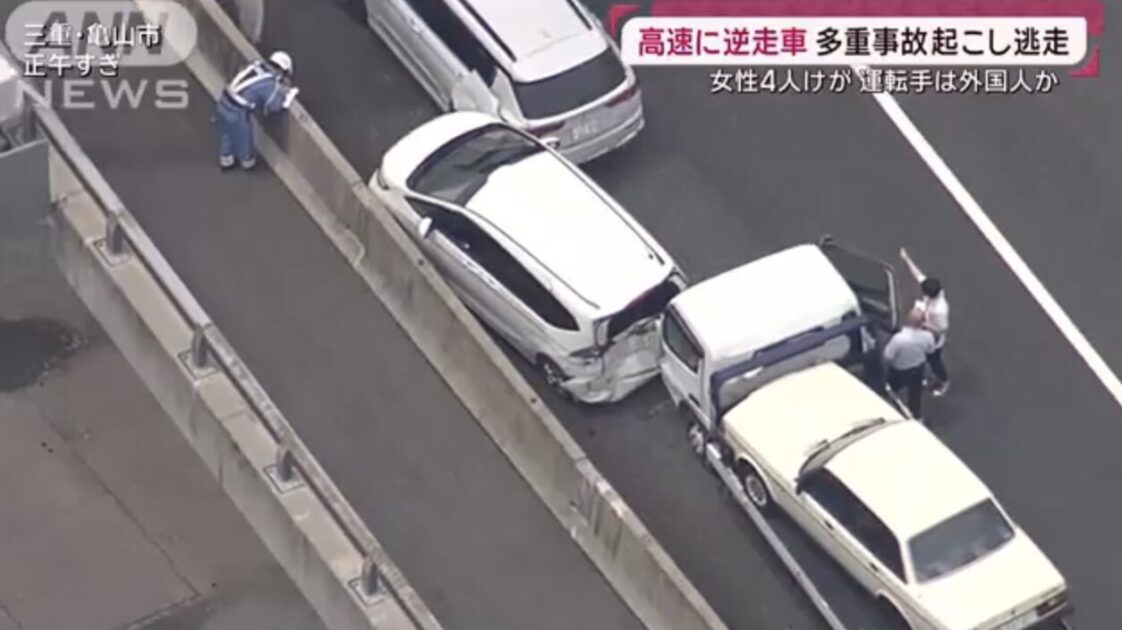 三重県の新名神高速道路下り線、鈴鹿トンネル付近で車が逆走し、避けようとして止まった車など4台が絡む追突事故が起きました。この事故で女性4人が軽いけがをし、警察によると逆走した車は別の2台の車と接触し、そのまま走り去ったというのです。逆走した車を目撃した人はー。