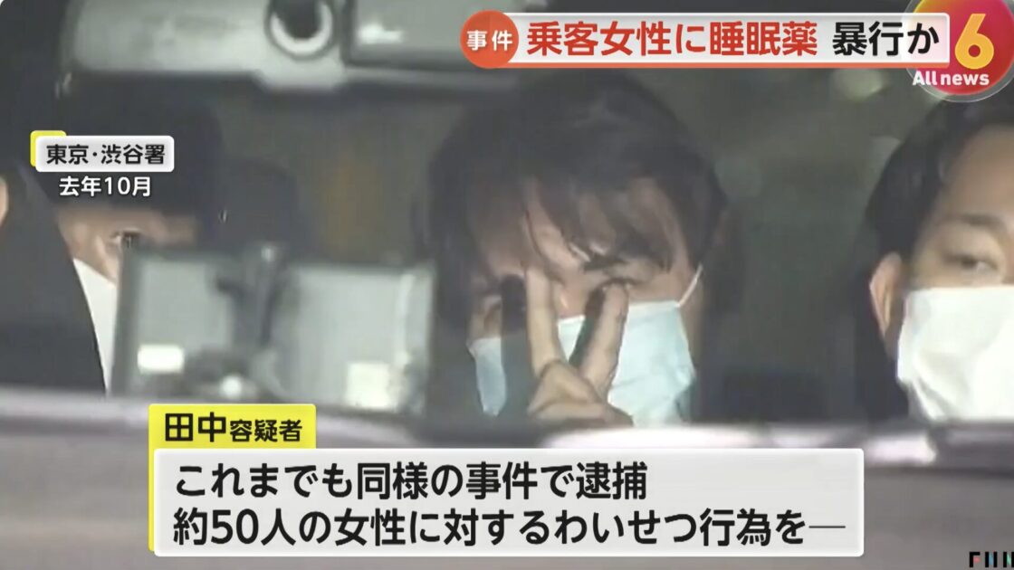 田中容疑者は去年7月、自身が運転するタクシーに乗車した20代の女性に睡眠薬を飲ませて意識を失わせたうえ、女性の自宅に連れ込み、性的暴◯を加えて、その様子をスマートフォンで撮影した疑いがもたれています。