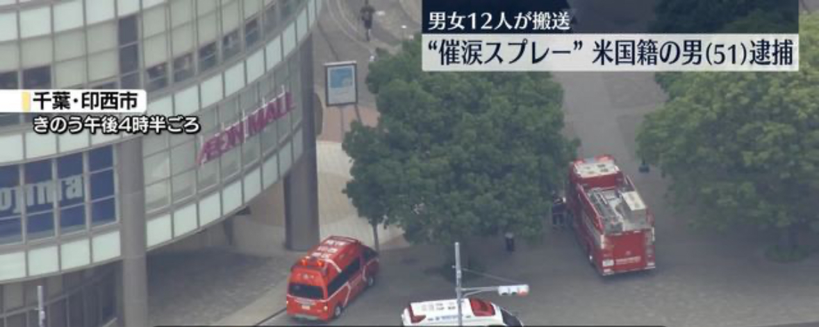 【千葉】イオンで催涙スプレー噴射、12人が救急搬送…米国籍の容疑者(51)逮捕「自分も攻撃された」