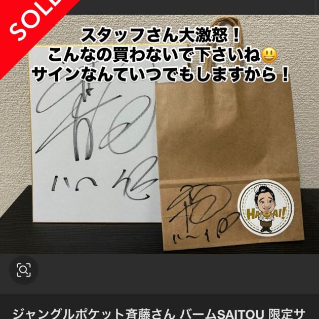 同アカウントでは22日の更新で、斉藤被告のものとみられるサイン色紙や、同様のサインが書かれた同店の袋とみられるものがネット上で転売されているように思われる画像をアップ。同店のバームクーヘンセットも「6000円」で転売されているとみられる画像が添付され、「スタッフさん大激怒! こんなの買わないで下さいね サインなんていつでもしますから!」「スタッフさん大激怒! 6月からネット販売する予定なので、こんなの買わないで下さいね」などと大きな文字で、転売品を買わないよう呼びかける“緊急警告”をつづった。