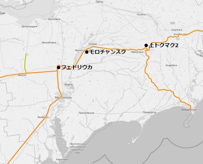 ヴェルフニィ・トクマク~モロチャンスク~フェドリウカの路線間で攻撃を仕掛けたとしています。ヴェルフニィ・トクマクは上トクマクという意味で、トクマク川の上流部という意味の地名です(このためトクマクと上トクマクは50kmほど離れている)。