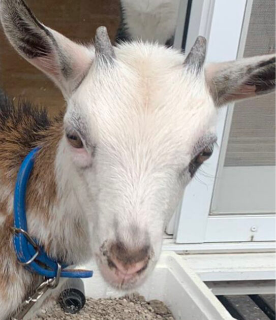 “仙台メリー”。小屋の入り口に青い字でそう書かれていた。飼育先の高齢男性がヤギの半生について