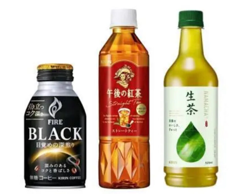 (左から)「ファイア ブラック 目覚めの深掘り」「午後の紅茶 ストレートティー」「生茶」(いずれもキリンHD提供)