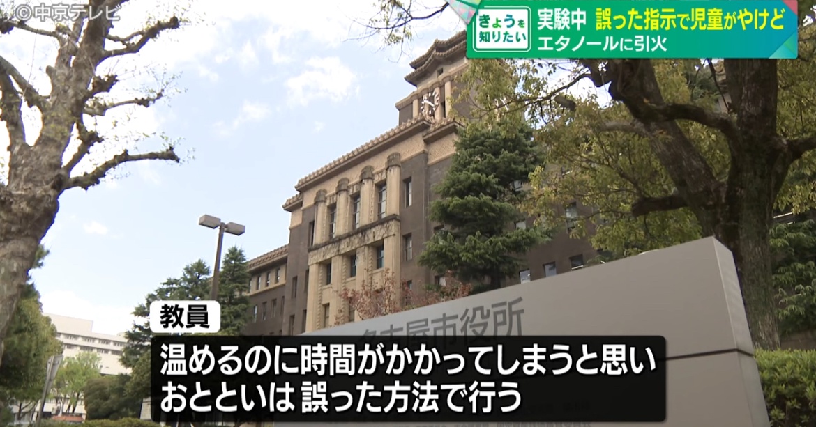 名古屋市の小学校で6年生理科実験中に児童がやけど 現在入院中 2年目教員(28)「エタノールが危険という認識が不足していた」学校は救急車の要請せず