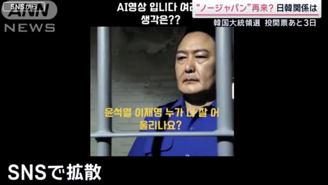 SNSで拡散された映像に映るのは、韓国大統領選に立候補している最大野党「共に民主党」のイ・ジェミョン候補とユン前大統領とみられる人物。囚人服を着て刑務所に収監されているようにみえます。イ・ジェミョン候補のイメージダウンを狙った動画とみられています。今回の選挙では、こうした偽動画がSNS上で急増してます。