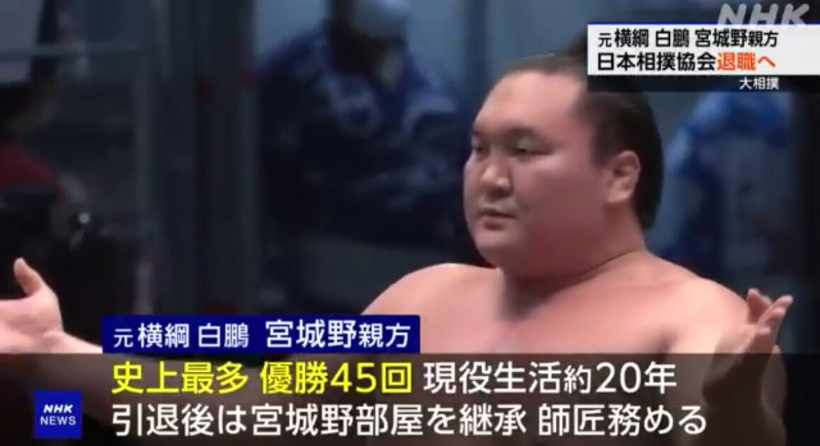 元横綱 白鵬の宮城野親方が日本相撲協会を退職へ 史上最多優勝