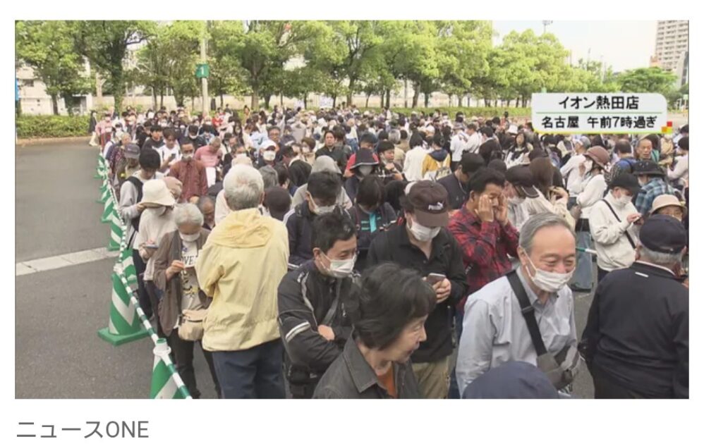 6月2日午前7時過ぎ、名古屋市熱田区の「イオン熱田店」には、随意契約で入手した2022年産の「古古米」を買い求める1000人ほどの長い行列ができ、先が見えないほどでした。