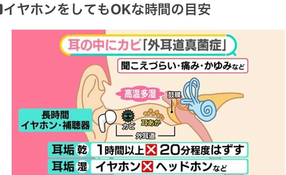 「時間の目安も含めた予防策について、ささづか駅前おはな診療所の松尾有希子院長に聞きました。耳垢が乾いているタイプの人は1時間以上はつけない。イヤホンを外しておく時間、つまり耳を乾かす時間は20分程度を意識してほしいということでした」「耳垢が湿っているタイプの人は、なるべくイヤホンを使わない。せめて密閉しないヘッドホンを使うようにしてほしい、ということでした」