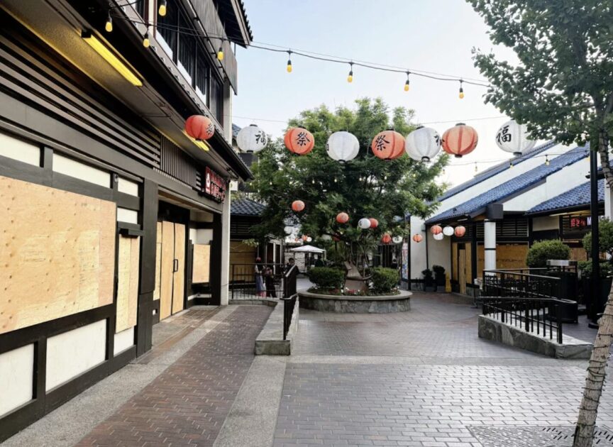 抗議が続くのは、大リーグ・ドジャースのスタジアムにも近いダウンタウン地区で、リトルトーキョーはこの一角にある。市は10日以降、午後8時から翌朝6時にかけて外出禁止令を出しており、多くの店が夕方には閉店を強いられている。
