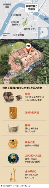 明らかになるのは、公州・武寧王陵、益山・双陵(武王)に続いて3例目。2号墳からは精巧な金の耳飾りや指輪、玉といった遺物も