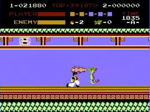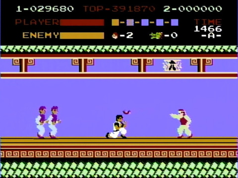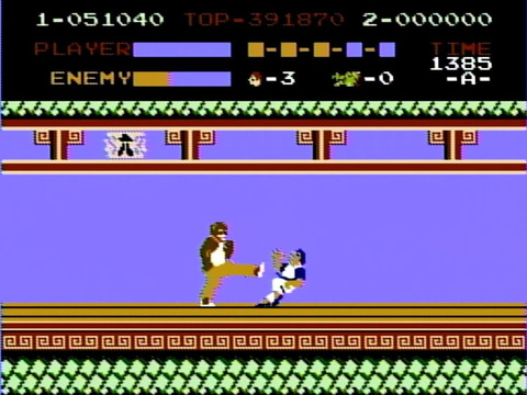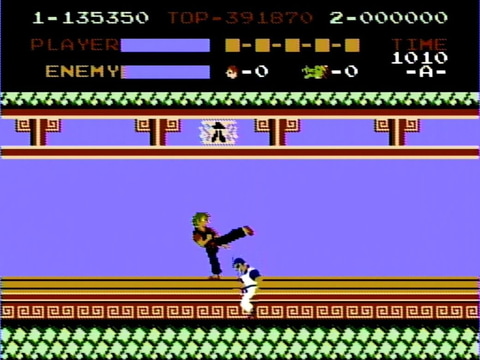 本作は、ジャッキー・チェン主演のカンフー映画をモチーフとし、1984年にアイレムが発売した同名のアーケードゲームを移植したもの。主人公のトーマスを十字ボタンとパンチ、キックボタンで操作して敵を倒し、制限時間内にボスを倒してゴール地点まで到達すればクリアとなるアクションゲームだ。敵に体をつかまれたり、攻撃されたりするとトーマスのライフが減り、ライフがゼロになるか、または時間切れになるとミスになり、トーマスのストックがゼロになるとゲームオーバーとなる。
