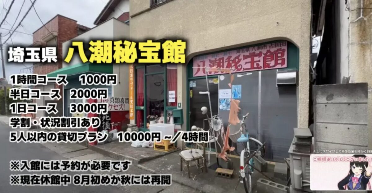 八潮秘宝館は休館中とのことですが、館主曰く、月ノとそのマネージャーが予約なしで突然やってきたため、予約をして後日訪れるようにと断ったそうです。予約の名義は月ノの実名で、館主が実名を検索してVTuberの中の人であることを突き止め、館主から指摘して初めて動画の企画であることが分かったのだとか。