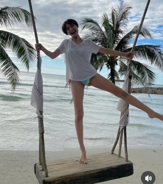 「いろんな思いがあふれて書きたいことがまとまりきらないので、一旦楽しそうな写真を投稿します!笑 クッド島の海辺にあったブランコが大きすぎて、いろいろサイズ感がおかしく見えますが、無加工です笑」と記し、南国ビーチの巨大ブランコに水着姿で乗ってはしゃいでいるショットを投稿した。