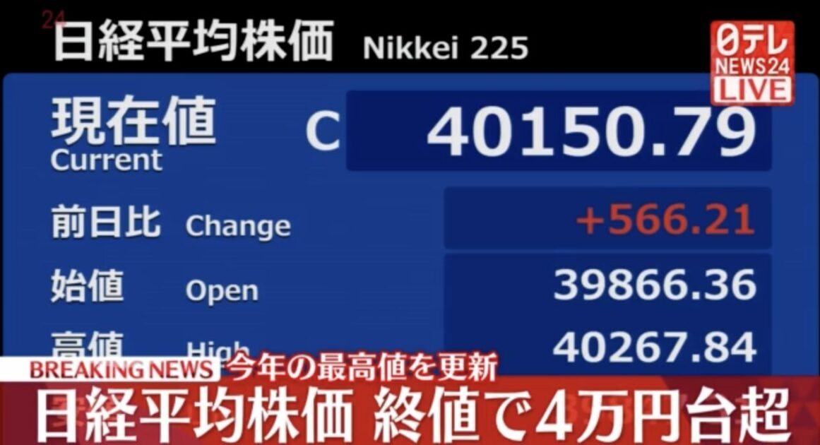 日経平均、終値で4万円超…約半年ぶり 今年の最高値更新日テレNEWS NNN