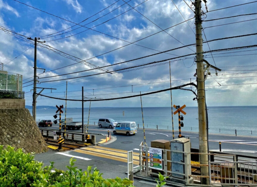 観光客にも人気の江ノ電の踏切
