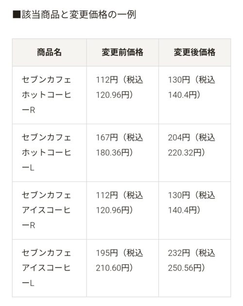 平素はセブン‐イレブンをご愛顧賜りまして誠にありがとうございます。このたび『セブンカフェ』の一部商品について、価格の見直しを行いますので、ご案内申し上げます。世界におけるコーヒー市場は年々拡大し、消費量が増加している中、地球温暖化や天候不順などにより生産量が減少しており、コーヒー豆の価格高騰が続いております。