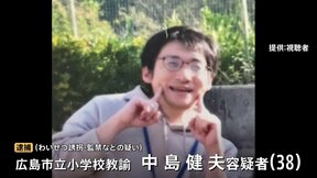 逮捕されたのは、広島市立小学校の教諭・中島健夫容疑者(38)です。警察によりますと、中島容疑者は27日午前9時ごろ、小学校の誰もいない教室で10歳未満の女の子に「待っといて」と言い、