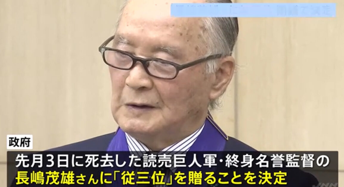 政府は1日の閣議で、6月3日に89歳で亡くなった読売巨人軍・終身名誉監督の長嶋茂雄さんに従三位を贈ることを決めました。