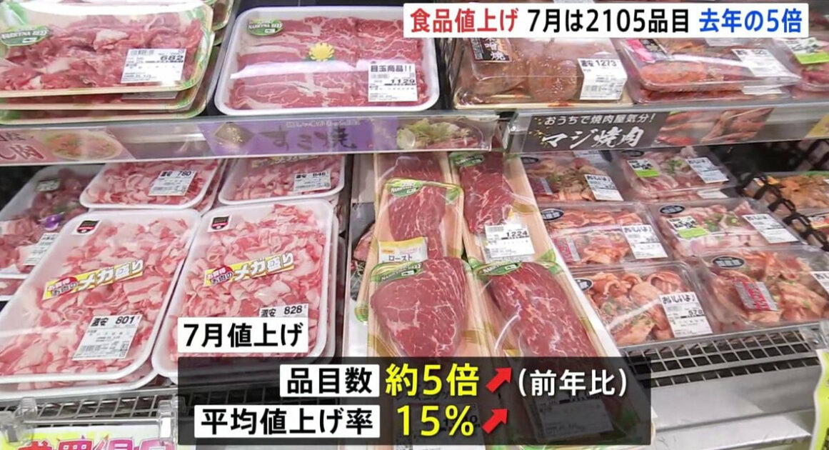 7月の食品値上げ「去年の約5倍」に急上昇 2105品目 原材料と賃上げによる人件費の上昇などが値上げの要因