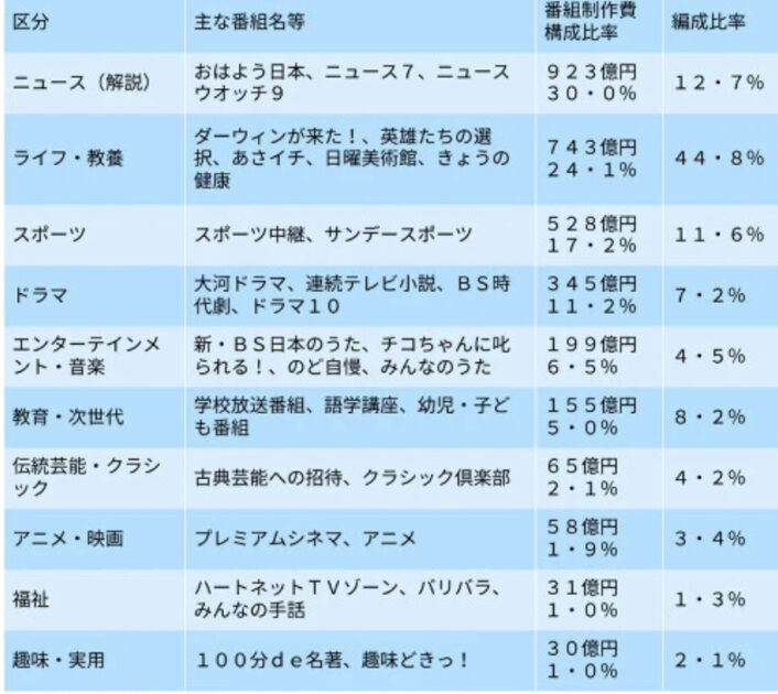 これに「ダーウィンが来た!」「あさイチ」「きょうの健康」などのライフ・教養の743億円(24・1%)が続く。