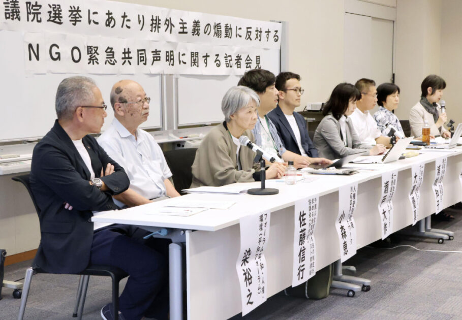 参院選で複数政党が「違法外国人ゼロ」や「日本人ファースト」などと排外主義政策を掲げているとして、外国人の人権や難民問題に取り組む8団体が8日、「外国人が優遇されているというのは全く根拠のないデマ」で「政府、国会は人種差別を禁止し終了させる義務がある」とする緊急共同声明を発表した。