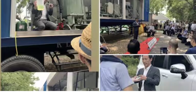 「泉大津市において、合成燃料製造装置の可動式と実演会を行いました。水と空気から光の力で、45分間で約20リットルの軽油ができました」(原文ママ)