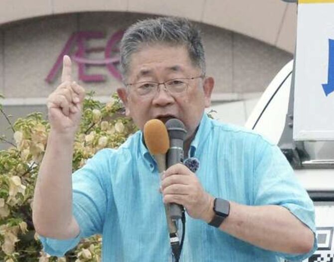 共産党の小池晃書記局長は11日、参院選の比例代表候補の応援のため鹿児島市で街頭演説した。選挙戦の最大の焦点を物価高対策とし「消費税を一律5%に減税し、廃止を目指す。国民の暮らしを守り抜く」と強調した。 財源確保には「大企業や富裕層への税優遇を見直す」とし、自民党が公約に掲げた国民1人当たり2万円給付を「配る金があるなら税金を取らなければいい」と批判した。