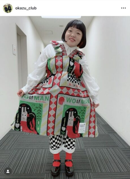 インスタグラムに「ちょっと前のですが…」とスタイリストがオカリナの衣装姿を投稿。カラフルなワンピースにギンガムチェックのパンツを合わせたスタイルで「オカリナさんらしく、ちょっとコケティッシュさもありつつ、安定のドール感でまとめました!ワンピースの柄も不思議な感じで可愛く、うるさいかな…と思いつつ、オカリナさんならイケるだろう!!と言う謎の自信でチェッカーのパンツを合わせました」とポイントを説明した。