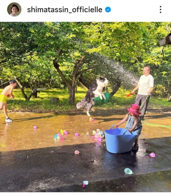 まずは14日に「自然は美しいなぁ」と題して投稿。「こんなに暑くても水は冷たいし、子供達は虫探しに夢中で、ミーカも嬉(うれ)しくて走り回っている。この景色を守っていきたいなぁと毎日毎日思います」と愛犬ミーカの様子も伝え「#里山」とハッシュタグをつけた。