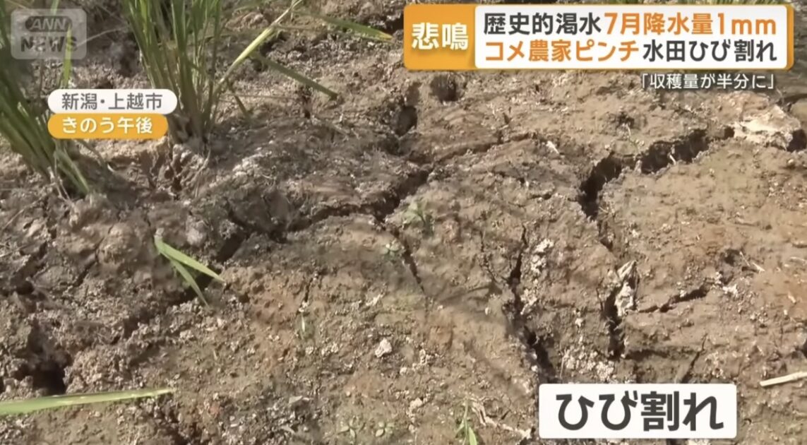 雨が降らない…新潟・上越市は7月降水量わずか1ミリ 水田ひび割れ、コメがピンチ