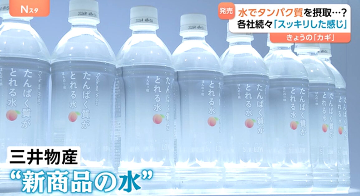 「“新しい水”の発表会が行われています」きょう三井物産が発表したのは、セブン-イレブンで販売される新商品の“水”。実はこれ、“タンパク質が摂れちゃう水”なんです!