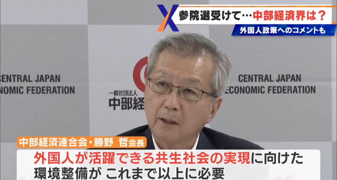 引用元: ・【経済界】「外国人労働者は欠かせない。共生社会の実現を」 中部経済連合会の勝野会長が参院選の結果を受け指摘 [シャチ★]