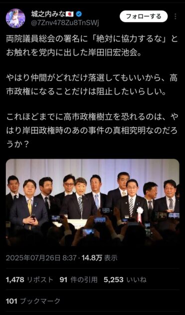 引用元: ・【朗報】岸田文雄、両院議員総会の署名に「絶対に協力するな」とお触れを出しかwwww [487816701]