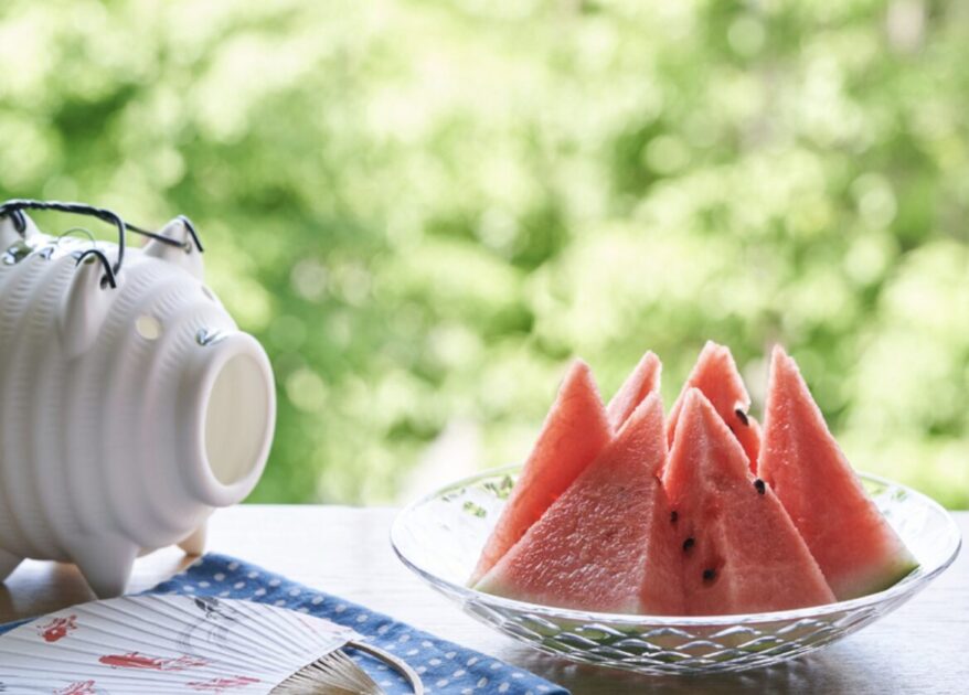 スイカはカロ◯ーが低く、全体の90%以上が水分でできています。含まれている栄養素は、抗酸化作用や美肌効果があり、コラーゲンの生成を助けるビタミンCや、むくみ予防に役立つカリウム、皮膚を健康に保ち、免疫機能を正常にするビタミンAやベータカロテン、リコピンなどです。