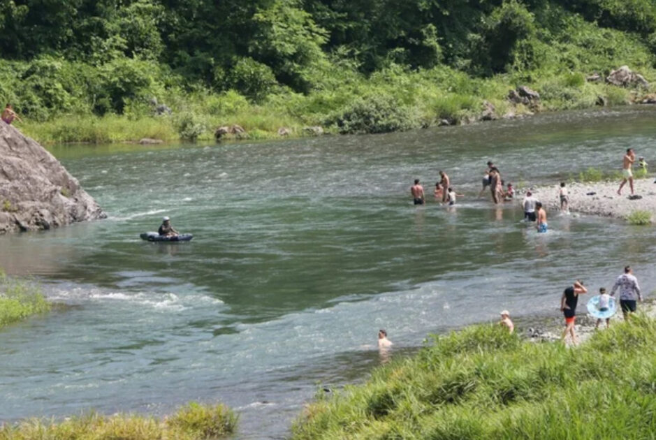 現場は50メートルほど上流。グループ同士の口論がけんかに発展、1人が相手の男性をバーベキュー用の金串で刺したという。外国人の男女が流ちょうな日本語でことの経緯を警察官に訴えていた。その様子を数十人の外国人が見守っている。幸い、大きなけがにはいたらなかったようだが、警察官10人以上が出動する騒ぎになった。