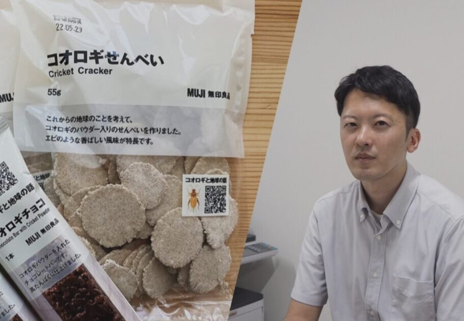 良品計画が販売しヒットした「コオロギせんべい」(左)/元木康介氏(右)