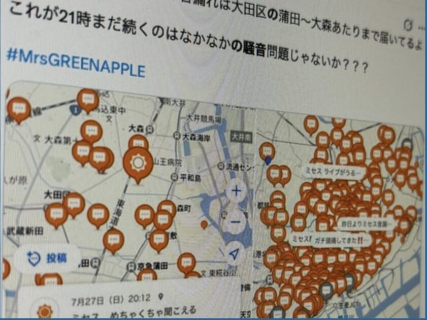 しかしライブと同時刻、SNS上では「ほんとにうるさくてキレそう」「川崎なのに横浜のミセスの音が隣の家のベース音くらいの感じでモコモコ聞こえる」など、証拠動画などを添付した投稿が相次いだ。「屋外ライブだから仕方ない」といったファンとみられる声もあったが「音楽が聞こえるのとは訳が違う」「ドンドンと言う重低音だけが、家の中まで聞こえてくる」など、その不快さを訴える人もいた。