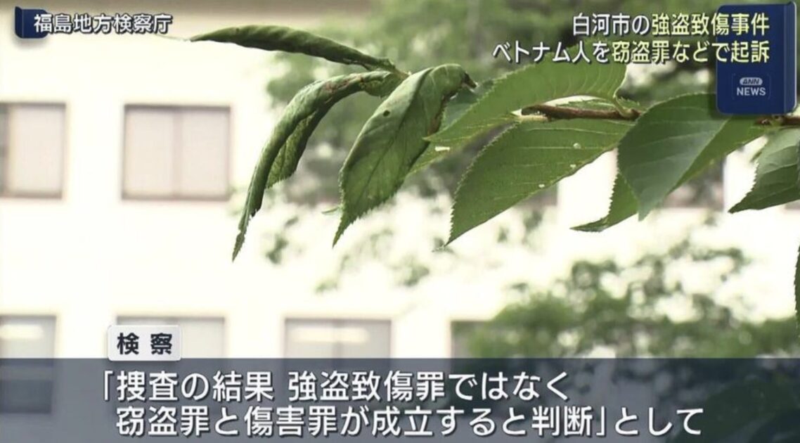 ベトナム人の技能実習生、ヴン ヴァン ドアン被告(22)は7月7日、白河市のスーパーでおもちゃなどを盗み、警備員の女性を振り払ってけがをさせたとして、強盗致傷の疑いで逮捕されていました。検察は「捜査の結果、強盗致傷罪ではなく、窃盗罪と傷害罪が成立すると判断した」として、ヴン被告を窃盗と傷害の罪で起訴しました。