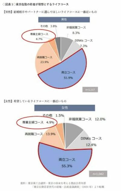若い男性にとっては、専業主婦妻は最も妻となる人に目指してほしくないライフコースとなっている。