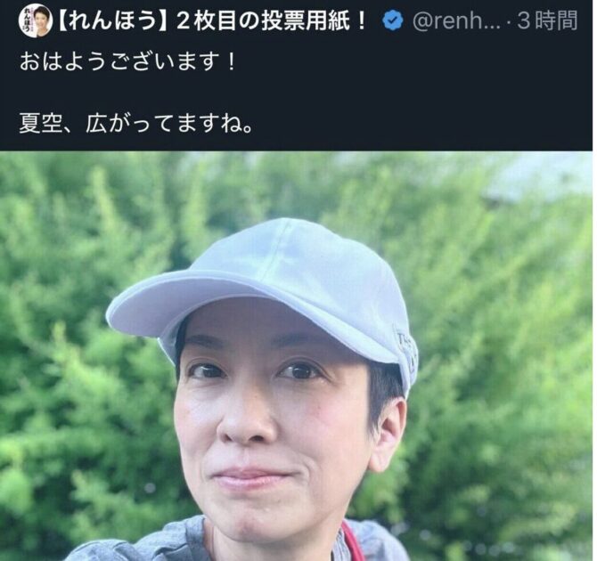 蓮舫氏は選挙当日、Xのアカウント名を「【れんほう】2枚目の投票用紙!」であったことが議論を呼び、“公職選挙法違反”に当たるのではないかと物議になり、当選確実を決めた際の取材では「不注意です」と説明していた。