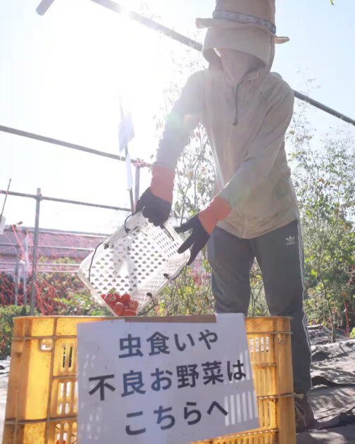 「ピーマンは暑さにやられて元気がない」。水やりをしていた従業員の女性はこう話し、出荷できなくなった野菜を取り分けた。