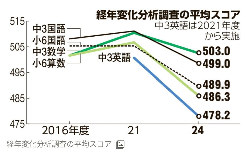 小6と中3の学力スコア低下、識者「深刻な結果」 国の経年変化分析ップ