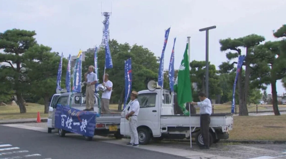 「島根県庁前です。いま農家のみなさんが現状の悲痛な思いを訴えています」