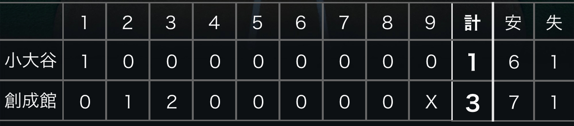 小松大谷 1 0 0 0 0 0 0 0 0|1