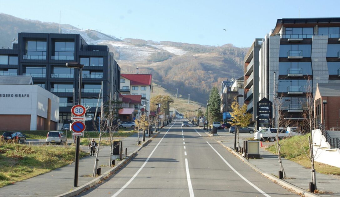 外国人宿泊者向けの別荘などが立ち並ぶニセコエリアの一角=2017年10月、北海道倶知安町